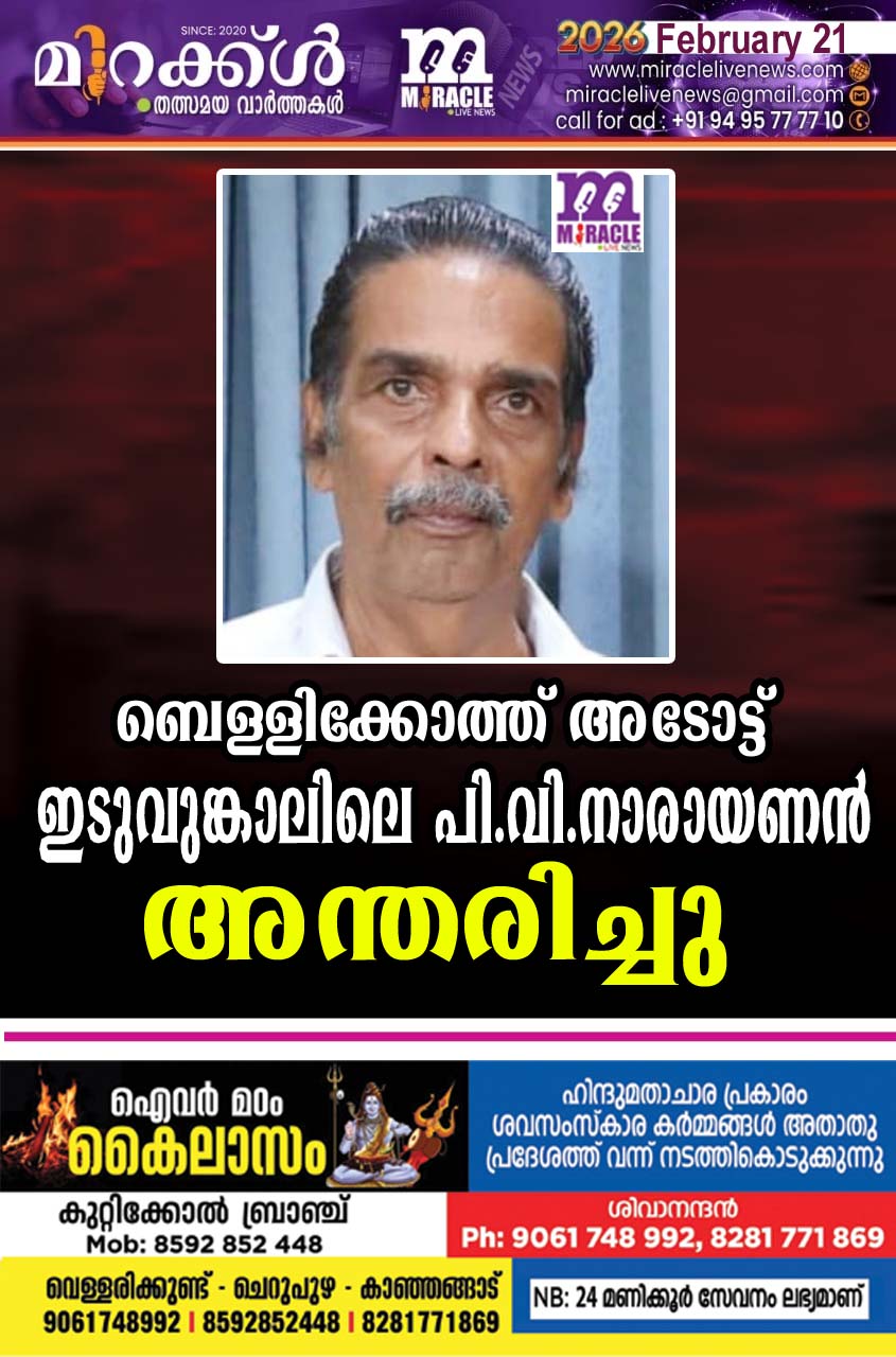 ബെള്ളിക്കോത്ത് അടോട്ട് ഇടുവുങ്കാലിലെ പി. വി. നാരായണന്‍ അന്തരിച്ചു