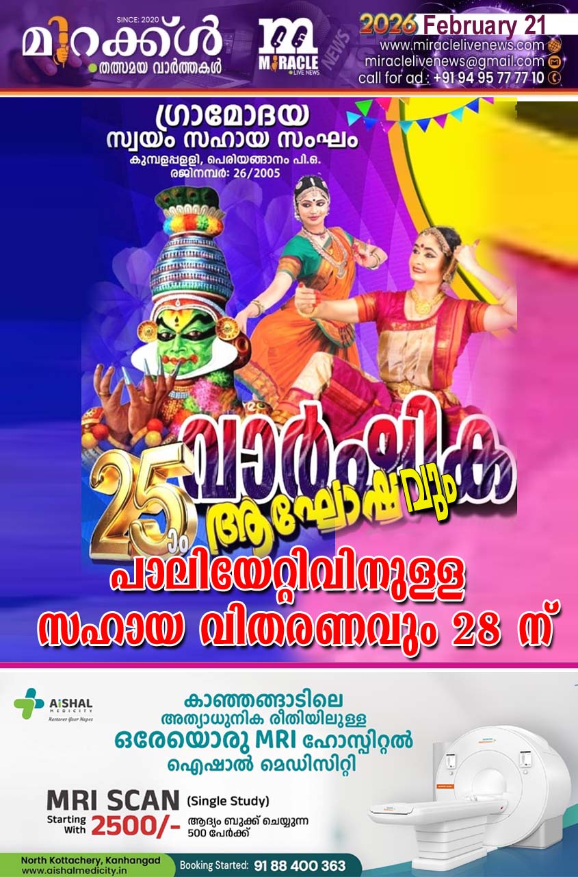 25ാം വാര്‍ഷികാഘോഷവും പാലിയേറ്റിവിനുള്ള സഹായ വിതരണവും 28 ന്