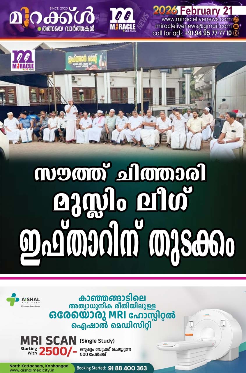 കാഞ്ഞങ്ങാട് : സൗത്ത് ചിത്താരി മുസ്ലിം ലീഗ് കമ്മിറ്റിയുടെ ആഭിമുഖ്യത്തില് റമദാന് മാസം മുഴുവനും നടത്തപ്പെടുന്ന ഇഫ്താര് വിരുന്നിന് തുടക്കം കുറിച്ചു.വഴിയാത്രക്കാര്ക്കും മറ്റും സൗത്ത് ചിത്താരിയില് പ്രത്യേകം സജ്ജമാക്കിയ ഇഫ്താര് ടെന്റ്റിലാണ് ഇഫ്താര് ഒരുക്കിയിരിക്കുന്നത്.ഉദ്ഘാടന ചടങ്ങ് വാര്ഡ് പ്രസിഡണ്ട് ബഷീര് മാട്ടുമ്മലിന്റെ അധ്യക്ഷതയില് മുസ്ലിം ലീഗ് സംസ്ഥാന സെക്രട്ടറിയേറ്റ് അംഗവും മണ്ഡലം പ്രസിഡന്റുമായ ബഷീര് വെള്ളിക്കോത്ത് ഉദ്ഘാടനം നിര്വഹിച്ചു.സൗത്ത് ചിത്താരി ഖത്തീബ് ജുനൈദ് ജലാനി പ്രാര്ത്ഥന നടത്തി.വാര്ഡ് ജനറല് സെക്രട്ടറി സി.പി.സുബൈര് സ്വാഗതം പറഞ്ഞു.ദേശീയ കൗണ്സിലര് എ.ഹമീദ് ഹാജി,ജമാഅത്ത് പ്രസിഡന്റ് ഹബീബ് കൂളിക്കാട്, ട്രഷറര് ശറഫുദ്ധീന് ബെസ്റ്റ് ഇന്ത്യ,പഞ്ചായത്ത് ജനറല് സെക്രട്ടറി ബഷീര് ചിത്താരി, സെക്രട്ടറി ഖാലിദ് അറബിക്കാടത്ത്,സി.എച്ച്. മുഹമ്മദ് കുഞ്ഞി,കെ. എം.മുഹമ്മദ് കുഞ്ഞി കൊളവയല്, കരീം മട്ടന്, പി. അബൂബക്കര് ഹാജി, വാര്ഡ് ട്രഷറര് പി.കുഞ്ഞബ്ദുള്ള ഹാജി,വാര്ഡ് മെമ്പര് സി. എച്ച്. നിസാമുദ്ധീന്,അഹമ്മദ് കപ്പണക്കാല്,ബക്കര് ഖാജ,ഇ.കെ. ശംസുദ്ധീന്,അസീസ് ചാപ്പയില്,മൊയ്ദീന് കുഞ്ഞി തൊട്ടി, റഫീഖ് പുതിയ വളപ്പില്,അബ്ദുള്ള കക്കൂത്തില്,മജീദ് തായല്,അബ്ദുല് ഖാദര്,സി. കെ.അഹമ്മദ് തുടങ്ങിയവര് സംസാരിച്ചു