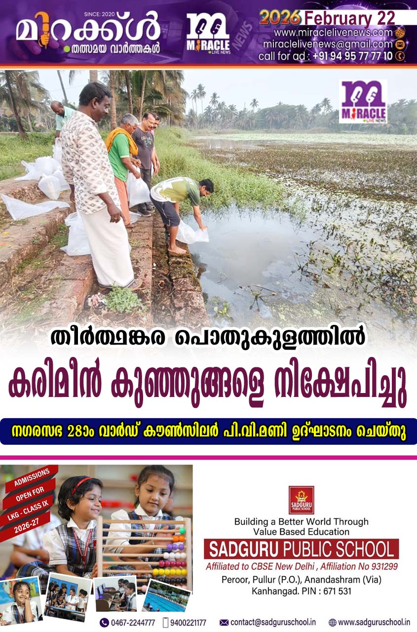 കാഞ്ഞങ്ങാട്: മുന്സിപ്പാലിറ്റിയിലെ തീര്ത്ഥങ്കര പൊതുകളത്തില് കരിമീന് കുഞ്ഞുങ്ങളെ നിക്ഷേപിച്ചു.