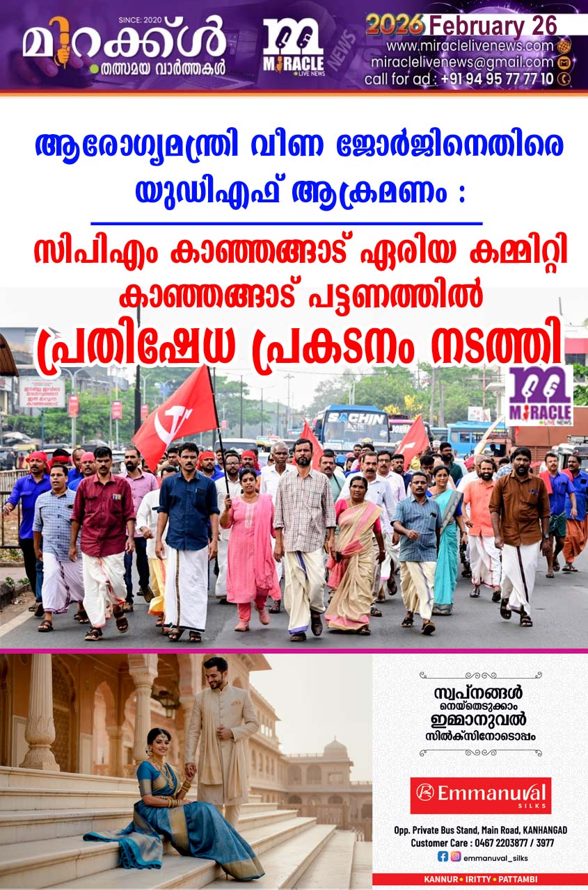 കാഞ്ഞങ്ങാട്: ആരോഗ്യ വകുപ്പ് മന്ത്രി വീണ ജോര്ജിനെ കണ്ണൂരില് യുഡിഎഫ് കെഎസ്യു പ്രവര്ത്തകര് അക്രമിച്ചതില് സിപിഐഎം കാഞ്ഞങ്ങാട് ഏരിയ കമ്മിറ്റി കാഞ്ഞങ്ങാട് ടൗണില് പ്രതിഷേധ പ്രകടനം നടത്തി നിരവധി പ്രവര്ത്തകര് പങ്കെടുത്ത് കുന്നുമ്മല് നിന്നും പ്രകടനം ആരംഭിച്ചു തുടര്ന്ന് പുതിയ കോട്ടയില് നടന്ന പൊതുയോഗത്തില് ഏരിയ സെക്രട്ടറി കെ രാജ്മോഹന് പി കെ നിഷാന്ത് എന്നിവര് സംസാരിച്ചു.