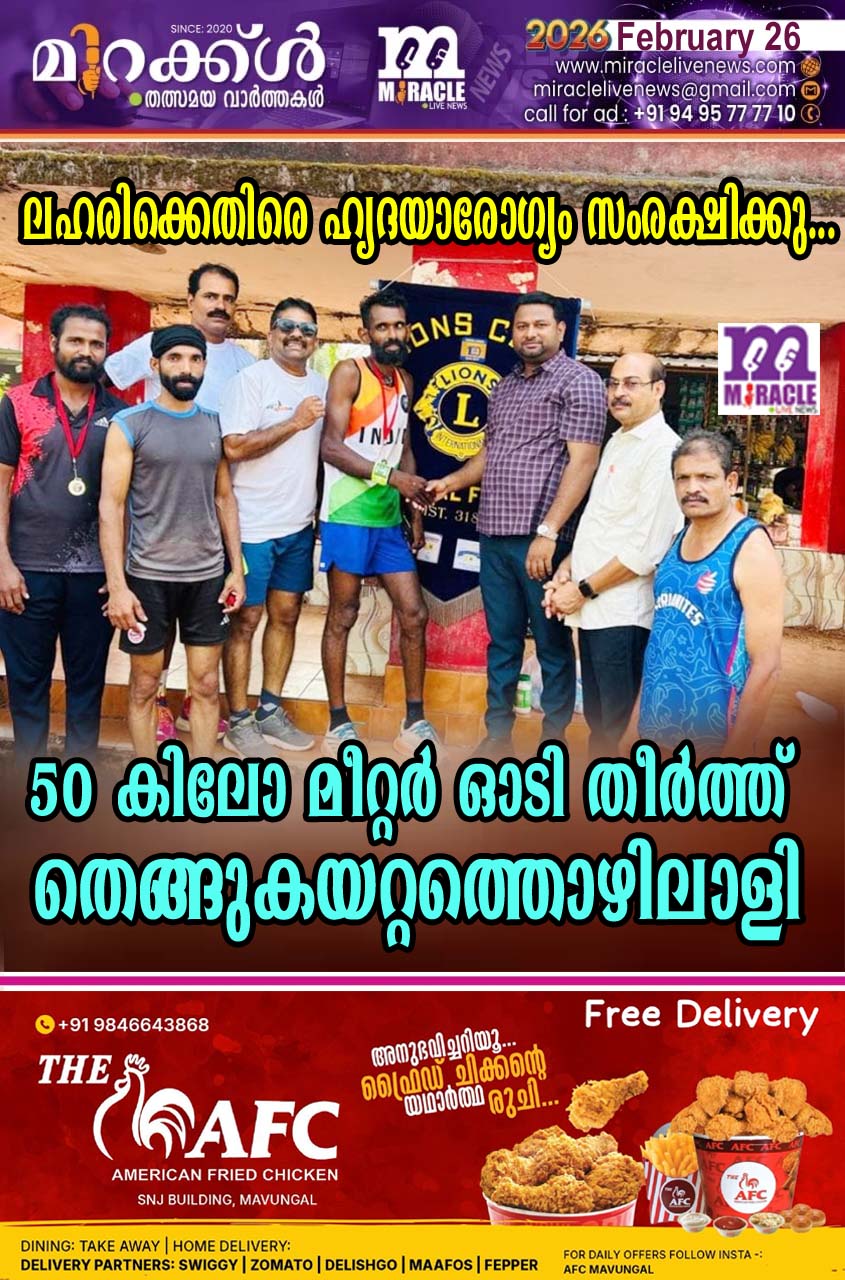 കാഞ്ഞങ്ങാട്: ലഹരിക്കെതിരെ…. ഹൃദയാരോഗ്യം സംരക്ഷിക്കു… രക്തദാനം പ്രോല്സാഹിപ്പിക്കു…. എന്ന ലക്ഷ്യവുമായി 50 കിലോ മീറ്റര് ഓടി തീര്ത്ത് തെങ്ങുകയറ്റത്തൊഴിലാളി പള്ളിക്കര പാക്കത്തെ വണ്ണാ ത്താന് വളപ്പില് ചന്ദ്രന് എന്ന 43കാരന്. പാക്കത്ത് നിന്നും തുടങ്ങി നിലേശ്വരം വരെയും തിരിച്ച് പാക്കത്ത് തന്നെ ഓടിയെത്തിയാണ് 50 കിലോമീറ്റര് പൂര്ത്തിയാക്കത്. ഓട്ടത്തില് പങ്കാളികളാവാന് എം.സി.താജുദ്ധീന്, വിനയന് അല്ലാക്കോട്, പി. ബഷീര് മാസ്റ്റര്, അനീഷ് കൊയ്ലറിയന്, സനുപ് ബളാല് ജയലക്ഷ്മി ബേക്കല്, പ്രശാന്ത് പാക്കം ,വിഷ്ണു പ്രശാന്ത് എന്നിവരും എത്തിയിരുന്നു. തെങ്ങുകയറ്റം വഴിയുള്ള കായികക്ഷമത ദീ ര്ഘദൂര ഓട്ടത്തില് കരുത്താകുകയായിരുന്നു.രാവിലെ മുതലുള്ള ജോലി തീര്ത്ത് വൈകിട്ട് പള്ളിക്കര ബീച്ചിലാണ് എന്നും പരിശീലനം.