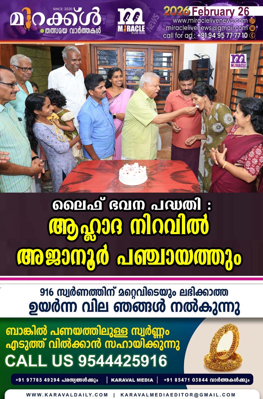 കാഞ്ഞങ്ങാട്: സംസ്ഥാനത്ത് ലൈഫ് മിഷനില് 5 ലക്ഷം വീടുകള് പൂര്ത്തീകരിച്ചതിന്റെ ആഹ്ലാദ വേളയില് അജാനൂര് പഞ്ചായത്തും പങ്കുചേര്ന്നു. ലൈഫ് മിഷന് പദ്ധതിയില് കാസര്കോട് ജില്ലയില് ഇരുപതിനായിരത്തിലേറെ വീടുകള് ഇതുവരെ പൂര്ത്തീകരിച്ചിട്ടുണ്ട്. അജാനൂര് പഞ്ചായത്തില് 269 വീടുകളാണ് പൂര്ത്തീകരിച്ച് നല്കിയത്. തികച്ചും ആധുനിക സജ്ജീകരണങ്ങളുടെ യുള്ള വീടുകളാണ് അജാനൂര് പഞ്ചായത്തില് നല്കിയത്. മൊത്തം ആറ് ലക്ഷം രൂപയില് 2 ലക്ഷം രൂപ സ്ഥലം വാങ്ങുവാനും നാല് ലക്ഷം രൂപ വീട് നിര്മ്മിക്കുവാനുമാണ് നല്കിയത്. മുന്പുള്ള ലക്ഷംവീട് പദ്ധതികളെപ്പോലെ വാസയോഗ്യമല്ലാതെ ഗുണഭോക്താക്കള് ഉപേക്ഷിച്ച് പോകുന്നവയല്ല ഇപ്പോഴത്തെവീടുകള് എന്ന് നമുക്ക് കാണുന്നമാത്ര യില് തന്നെ മനസ്സിലാകും.തികച്ചും ആധുനിക സജ്ജീകരണങ്ങളുടെ ഒരു കുടുംബത്തിന് സന്തോഷത്തോടെ കഴിയാനുള്ള എല്ലാ സാഹചര്യങ്ങളും ഈ വീടിനുള്ളില് ഒരുക്കിയിട്ടുണ്ട്. വീട് ലഭിച്ച കുടുംബങ്ങള് മധുര പലഹാരങ്ങള് നല്കിയും കേക്ക് മുറിച്ചും സന്തോഷം പങ്കുവച്ചു. അജാനൂര് പഞ്ചായത്തിലെ വാണിയമ്പാറ അള്ളങ്കോട് ശാന്തയുടെ ലൈഫ് ഭവന പദ്ധതി പ്രകാരം ലഭിച്ച വീട്ടില് സംസ്ഥാന കമ്മിറ്റി അംഗം എം. വി ജയരാജന് കേക്ക് മുറിക്കല് ചടങ്ങില് സംബന്ധിച്ച് ആഹ്ലാദം പങ്കുവെക്കലില് പങ്കുചേര്ന്നു. അജാനൂര് പഞ്ചായത്ത് പ്രസിഡണ്ട് വി.വി. തുളസി, മുന് പഞ്ചായത്ത് പ്രസിഡണ്ട് ടി. ശോഭ, വാര്ഡ് മെമ്പര് കെ. വി. സുകുമാരന്, സി.പി ഐ.എം ചിത്താരി ലോക്കല് സെക്രട്ടറി പി. കൃഷ്ണന് കോടാട്ട്,ലോക്കല് കമ്മിറ്റി മെമ്പര് എ. പവിത്രന് മാസ്റ്റര് ബ്രാഞ്ച് സെക്രട്ടറി എ.വി.പ്രമോദ് ലൈഫ് ഭവന പദ്ധതി ഗുണഭോക്താവ് ശാന്തയുടെ കുടുംബാംഗങ്ങള്, നാട്ടുകാര് എന്നിവര് ചടങ്ങില് സംബന്ധിച്ചു.
