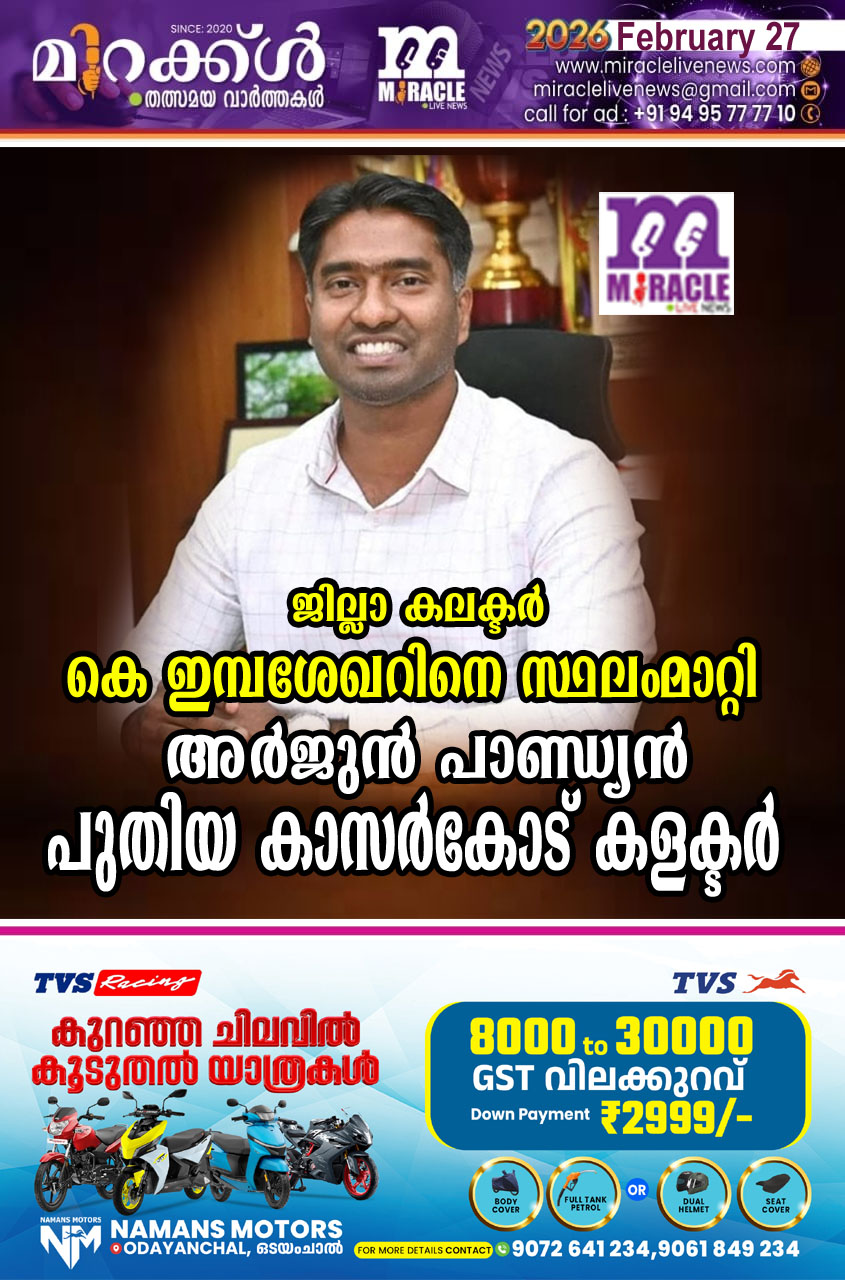 കാസര്കോട്: കാസര്കോട് ജില്ലാ കലക്ടര് കെ ഇമ്പ ശേഖറിനെ സ്ഥലംമാറ്റി. തൃശ്ശൂര് കലക്ടര് അര്ജുന് പാണ്ഡ്യനാണ് പുതിയ കാസര്കോട് കളക്ടര്. ടൂറിസം ഡയറക്ടര് ശിഖസുരേന്ദ്രനെ തൃശൂര് കലക്ടറായി നിയമിച്ചു. ഇമ്പ ശേഖറിന് പകരം നിയമനം നല്കിയിട്ടില്ല. ഇടുക്കിയിലെ ഏലപ്പാറ ബോണാമിയില് ജനിച്ച അര്ജുന്, 2016ബാച്ച് കേരള കേഡര് ഐഎഎസ് ഉദ്യോഗസ്ഥനാണ്. പര്വതാരോഹണത്തിലെ അദ്ദേഹത്തിന്റെ നേട്ടങ്ങള് ശ്രദ്ധേയമാണ്. ആഫ്രിക്കയിലെ ഏറ്റവും ഉയരം കൂടിയ കൊടുമുടിയായ കിളിമഞ്ചാരോയും യൂറോപ്പിലെ ഏറ്റവും ഉയരം കൂടിയ കൊടുമുടിയായ എല്ബ്രസും കീഴടക്കിയ ആദ്യ ഐഎഎസ് ഉദ്യോഗസ്ഥനാണ്. സാമ്പത്തിക ബുദ്ധിമുട്ടുകള് നേരിട്ട അദ്ദേഹം, തേയിലച്ചാക്ക് ചുമന്നും ട്യൂഷന് എടുത്തും പഠിച്ചുമാണ് ഐഎഎസ് നേടിയത്. തിരുവനന്തപുരം കിളിമാനൂര് ഗവ.ഹയര് സെക്കന്ഡറി സ്കൂളില് പ്ലസ്ടു പഠനത്തിനു ശേഷം കൊല്ലം ടികെഎം എന്ജിനീയറിങ് കോളജില് ബിടെക് പൂര്ത്തിയാക്കി. 2014ല് ടിസിഎസില്നിന്നു രാജിവച്ചു മുഴുവന് സമയവും പരിശീലനത്തില് ശ്രദ്ധ കേന്ദ്രീകരിച്ചു. 2016ല് ഐഎഎസ് നേടി. 2019ല് ഒറ്റപ്പാലം സബ് കളക്ടര് ആയി ചുമതലയേറ്റു.2024 ജൂലായ് മുതല് തൃശ്ശൂരിലെ കലക്ടറാണ്. പാലക്കാട് മെഡിക്കല് കോളജിന്റെ സ്പെഷല് ഓഫിസര് പദവിയും ഉണ്ടായിരുന്നു. ഭാര്യ: ഡോ. പി.ആര്.അനു.