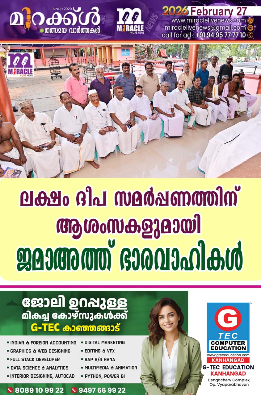 ആറങ്ങാടി: വടക്കന്കേരളത്തിന്റെ അമ്മ ദേവ സങ്കല്പ്പങ്ങളില് പ്രധാനിയായ നിലാങ്കര ശ്രീ കുതിരക്കാളി ഭഗവതി ക്ഷേത്രത്തിലെ പ്രതിഷ്ഠാ ദിന മഹോത്സവത്തിന്റെ ഭാഗമായുള്ള ലക്ഷം ദീപം സമര്പ്പണത്തിന് ആശംസകള് നേര്ന്ന് ആറങ്ങാടി ഇസ്സത്തുല് ഇസ്ലാം ജമാഅത്ത് ഭാരവാഹികള് ക്ഷേത്രാങ്കണത്തിലെത്തി. ആഘോഷത്തിന് ആശംസകള് നേരുകയും അടുത്ത മാസം നടക്കുന്ന ആറങ്ങാടി മഖാം ഉറൂസിന് ക്ഷേത്ര ഭാരവാഹികളെ ക്ഷണിക്കുകയും ചെയ്തു. ആഘോഷ കമ്മിറ്റി ചെയര്മാന് കൊവ്വല് ദാമോദരന്, ജന. കണ്വീനര് കൃഷ്ണന് പനങ്കാവ്, ക്ഷേത്ര കമ്മിറ്റി പ്രസിഡണ്ട് കെ സുന്ദരന് എന്നിവരുടെ നേതൃത്വത്തില് ജമാഅത്ത് ഭാരവാഹികളെ സ്വീകരിച്ചു. ജമാഅത്ത് പ്രസിഡണ്ട് എം കെ അബ്ദുല്റഷീദ് ഹാജി, അര്റഹ്മ സെന്റര് ചെയര്മാന് ബഷീര് ആറങ്ങാടി, ഉറൂസ് കമ്മിറ്റി ചെയര്മാന് സി എച്ച് അബ്ദുല് ഹമീദ് ഹാജി, ജമാഅത്ത് ജന. സെക്രട്ടറി ടി അബ്ദുല് അസീസ്, മുന് കൗണ്സിലര്മാരായ ടി റംസാന്, ടി മുഹമ്മദ് കുഞ്ഞി, എ പി കരീം, ക്ഷേത്ര ഭാരവാഹികളായ സുമേഷ്, സുരേന്ദ്രന്, സുകുമാരന്, മോഹനന് കൊവ്വല്സ്റ്റോര്, ഗംഗാധരന് കൊവ്വല്സ്റ്റോര്, പവിത്രന് എഞ്ചിനീയര്, ബിനു മാസ്റ്റര്, ദിനേശന് കുഞ്ഞമ്പു എന്നിവര് സംബന്ധിച്ചു.