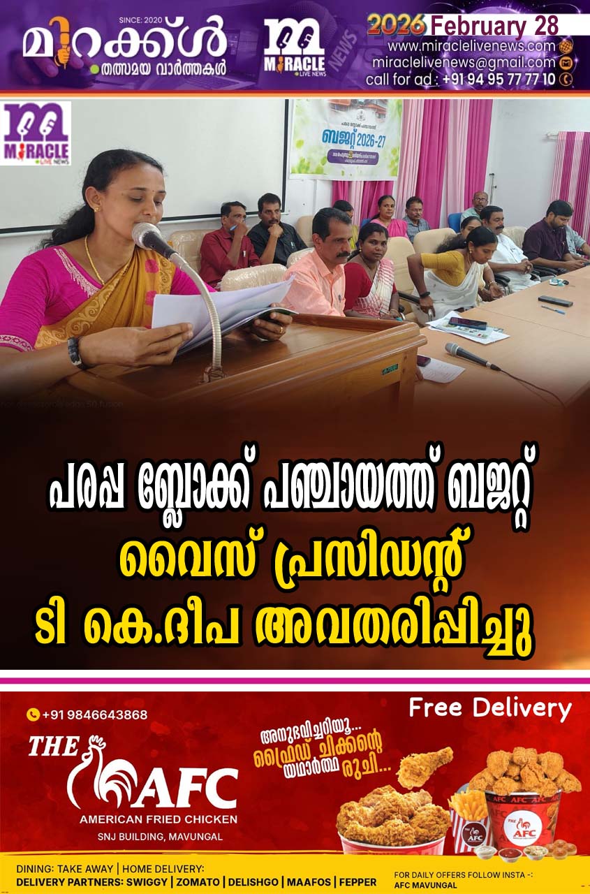 പരപ്പ ബ്ലോക്ക് പഞ്ചായത്തിന്റെ പുതിയ ഭരണ സമിതിയുടെ പ്രഥമ ബജറ്റ് ബ്ലോക്ക് പഞ്ചായത്ത് പ്രസിഡന്റ് സി.ബിന്ദുവിന്റെ അദ്ധ്യക്ഷതയില് ചേര്ന്ന യോഗത്തില് വൈസ് പ്രസിഡന്റ് ടി കെ.ദീപ അവതരിപ്പിച്ചു.ലൈഫ്/പി.എം.എ.വൈ. (ജി) ഭവന നിര്മ്മാണത്തിന് മുന്ഗണന നല്കിക്കൊണ്ട് 10.00 കോടി രൂപ വകയിരുത്തിയിട്ടുണ്ട്. ഉല്പ്പാദന മേഖലയില് മൊബൈല് വെറ്ററിനറി ക്ലിനിക് ഉള്പ്പെടെയുള്ള മൃഗസംരക്ഷണ മേഖലയില് പാലുല്പ്പാദന വര്ദ്ധനവ് ലക്ഷ്യമാക്കി നൂതന പദ്ധതിയും, കൃഷി, ക്ഷീര വികസനം, വ്യവസായം ഉള്പ്പെടെയുള്ള വിവിധ വികസന പ്രവര്ത്തനങ്ങള്ക്കായി 1.60 കോടി രൂപയാണ് ബജറ്റില് വകയിരുത്തിയിരിക്കുന്നത്. കാവുകളുടെയും കുളങ്ങളുടെയും പൊതുസ്ഥലങ്ങളുടെയും പുനരുജ്ജീവനം ലക്ഷ്യമാക്കിക്കൊണ്ട് പുനര്ജനി എന്ന പദ്ധതിയും ഈ വര്ഷം ഏറ്റെടുത്തു നടപ്പിലാക്കുന്നുണ്ട്. പ്രകൃതി സംരക്ഷണത്തിനും കാര്ഷിക ഉല്പ്പാദന വര്ദ്ധനവിനും വേണ്ടി കാര്ബണ് ന്യൂട്രല് ബ്ലോക്ക് എന്ന പേരില് പദ്ധതിയും തയ്യാറാക്കുന്നു. പാലിയേറ്റീവ് പ്രവര്ത്തനങ്ങള്ക്കായുള്ള പദ്ധതിയ്ക്കും ഡയാലിസിസ് സെന്റര് പ്രവര്ത്തനങ്ങള്ക്കുമായും തുക നീക്കി വെച്ചിട്ടുണ്ട്. ബ്ലോക്ക് പഞ്ചായത്തിന്റെ സമഗ്ര വികസനത്തിനായി സേവന മേഖലയ്ക്കായി 5.12 കോടി രൂപയുടെയും പശ്ചാത്തല മേഖലയ്ക്കായി 2.05 കോടി രൂപയുടെയും വിവിധങ്ങളായ പദ്ധതികള് ബജറ്റില് ഉള്ക്കൊള്ളിച്ചിട്ടുണ്ട്. പട്ടികജാതി വനിതകള്ക്ക് ഡ്രൈവിംഗ് പരിശീലനം, തെയ്യം കലാകാരന്മാര്ക്ക് ആടയാഭരണം തുടങ്ങിയ പദ്ധതികളാണ് പട്ടികജാതി മേഖലയിലേക്ക് വകയിരുത്തിയിരിക്കുന്നത്. പട്ടികവര്ഗ്ഗ മേഖലയില് ഊര് മഹോത്സവം നടത്താന് 4 ലക്ഷം രൂപ നീക്കി വെച്ചു. ആകെ 26,54,15,539/ രൂപ വരവും 25,62,08,312/ രൂപ ചെലവും 92,07,227/ രൂപ നീക്കിയിരിപ്പും പ്രതീക്ഷിക്കുന്ന 202627 വര്ഷത്തെ ബജറ്റ് അവതരിപ്പിച്ചു. യോഗത്തില് ഗ്രാമ പഞ്ചായത്ത് പ്രസിഡണ്ടുമാരായ അനു.പി.വി, ടി.വി.ജയചന്ദ്രന്, പി.രഘുനാഥ്, കെ. രജിത, ജില്ലാ പഞ്ചായത്ത് പൊതുമരാമത്ത് സ്റ്റാന്റിംഗ് കമ്മിറ്റി ചെയര്പേഴ്സണ് ഒക്ലാവ് കൃഷ്ണന്, ജില്ലാ പഞ്ചായത്ത് ക്ഷേമകാര്യ സ്റ്റാന്റിംഗ് കമ്മിറ്റി ചെയര്പേഴ്സണ് റീന തോമസ്, സ്റ്റാന്റിംഗ് കമ്മിറ്റി ചെയര്പേഴ്സണ്മാരായ പാറക്കോല് രാജന്,ചിത്രലേഖ.കെ.പി,ജെസ്സി ചാക്കോ, ബ്ലോക്ക് പഞ്ചായത്ത് മെമ്പര്മാരായ ഇ.ടി.ജോസ്, പി.ഗംഗാധരന് നായര്, ഭാസ്കരന്.എ.വി., ബ്ലോക്ക് പഞ്ചായത്ത് ആസൂത്രണ സമിതി ഉപാധ്യക്ഷന് കൃഷ്ണരാജ്.എ എന്നിവര് സംസാരിച്ചു. ബ്ലോക്ക് പഞ്ചായത്ത് സെക്രട്ടറിസുനില് കുമാര്.കെ. സ്വാഗതവും, ഹെഡ് അക്കൗണ്ടന്റ് അനീഷ്.ടി. നന്ദിയും പറഞ്ഞു.