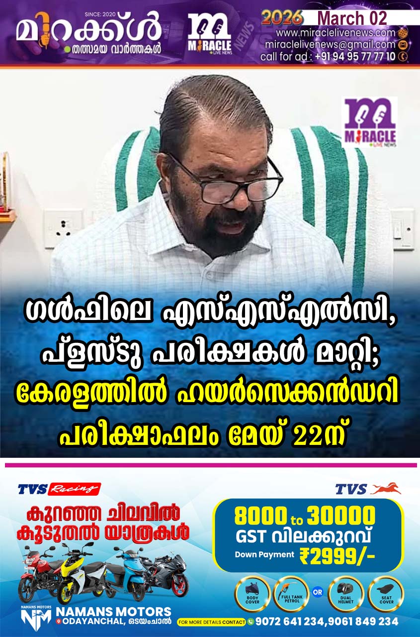 ഗള്ഫിലെ എസ്എസ്എല്സി, പ്ളസ്ടു പരീക്ഷകള് മാറ്റി; കേരളത്തില് ഹയര്സെക്കന്ഡറി പരീക്ഷാഫലം മേയ് 22 ന്