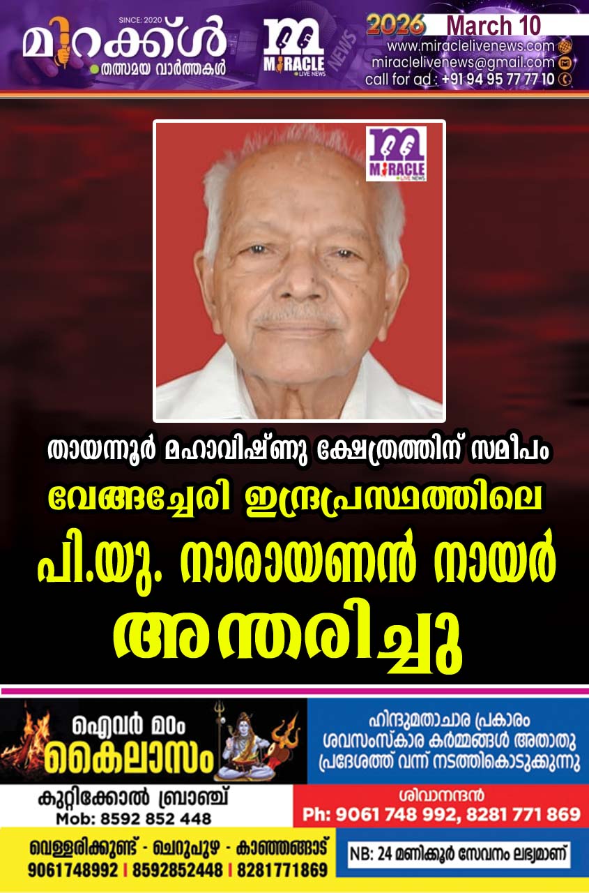 തായന്നൂര്‍ മഹാവിഷ്ണു ക്ഷേത്രത്തിന് സമീപം വേങ്ങച്ചേരി ഇന്ദ്രപ്രസ്ഥത്തിലെ പി.യു. നാരായണന്‍ നായര്‍ മുംബൈയില്‍’ അന്തരിച്ചു
