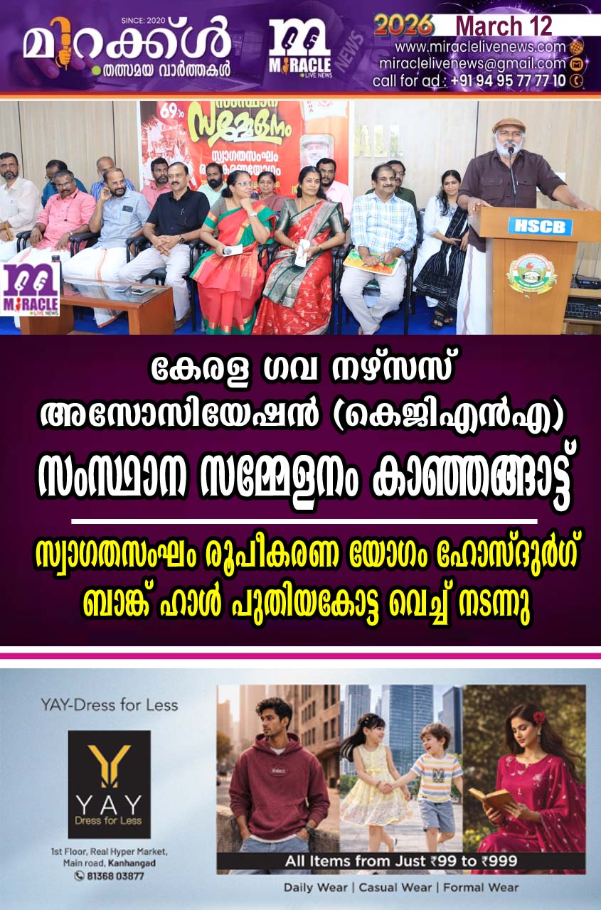 കാഞ്ഞങ്ങാട്: കേരള ഗവ നഴ്സസ് അസോസിയേഷന് (കെജിഎന്എ) സംസ്ഥാന സമ്മേളനം ജൂണ് 27,28 തീയതികളില് കാഞ്ഞങ്ങാട് വെച്ച് സംഘടിപ്പിക്കും. സ്വാഗതസംഘം രൂപീകരണ യോഗം ഹോസ്ദുര്ഗ് ബാങ്ക് ഹാള് പുതിയകോട്ട വെച്ച് നടന്നു. എം.രാജഗോപാലന് എം.എല്.എ ഉദ്ഘാടനം ചെയ്തു. സംസ്ഥാന പ്രസിഡന്റ് ഷൈനി ആന്റണി അധ്യക്ഷത വഹിച്ചു. കാഞ്ഞങ്ങാട് മുന്സിപ്പല് ചെയര്മാന് വി വി രമേശന്, മുന് എംഎല്എ കെ വി കുഞ്ഞിരാമന്, ഇ. പത്മാവതി, കാഞ്ഞങ്ങാട് മുന്സിപ്പല് വൈസ് ചെയര്പേഴ്സണ് ലത ബാലകൃഷ്ണന്,