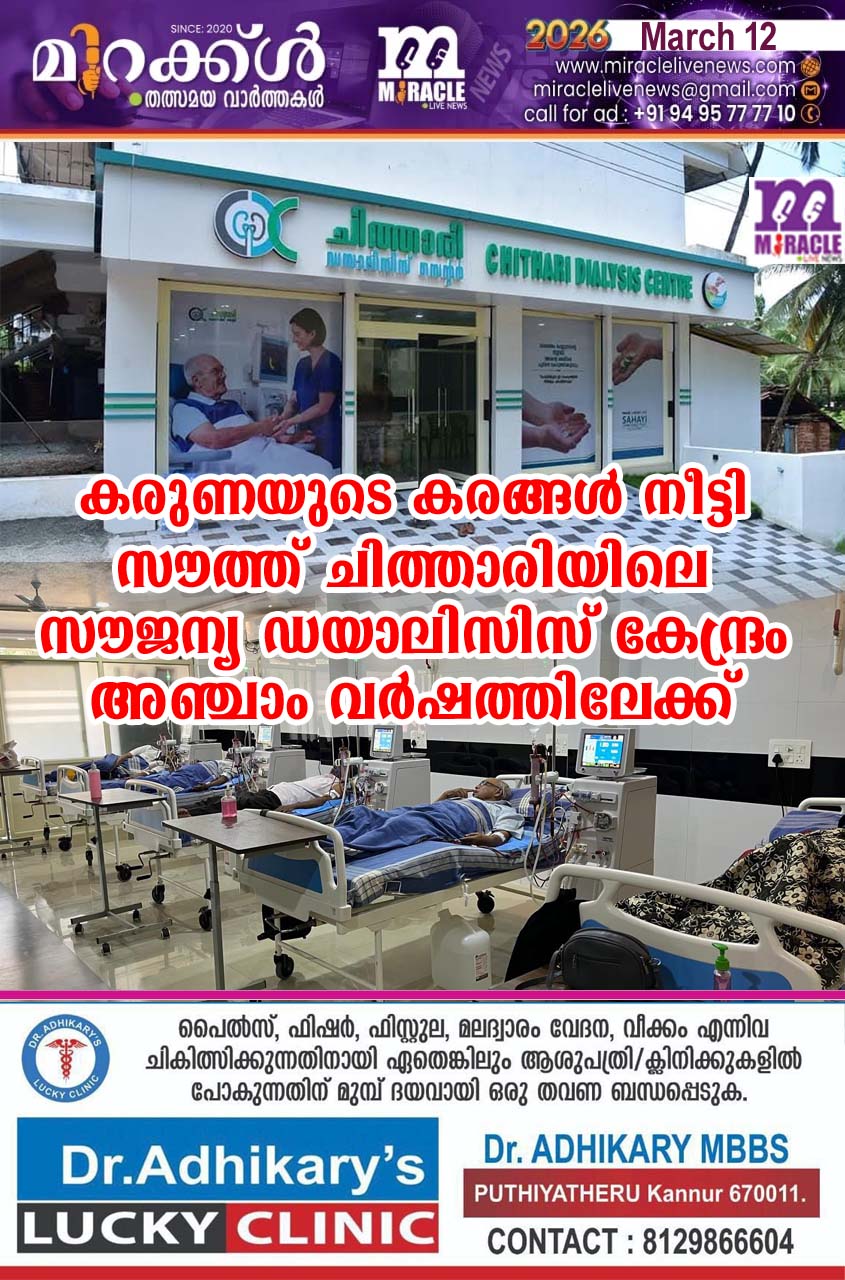 കരുണയുടെ കരങ്ങള്‍ നീട്ടി: സൗത്ത് ചിത്താരിയിലെ സൗജന്യ ഡയാലിസിസ് കേന്ദ്രം അഞ്ചാം വര്‍ഷത്തിലേക്ക്