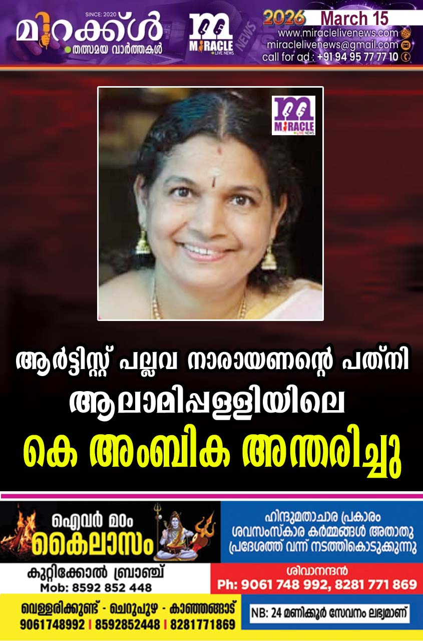 ആര്‍ട്ടിസ്റ്റ് പല്ലവ നാരായണന്റെ പത്‌നി ആലാമിപ്പള്ളിയിലെ കെ അംബിക അന്തരിച്ചു