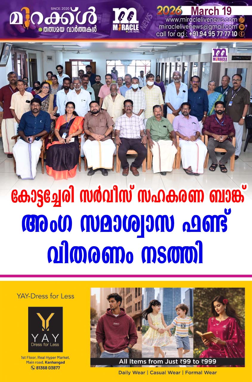 കാഞ്ഞങ്ങാട്:സഹകരണ മേഖലയോടൊപ്പം ജീവകാരുണ്യ മേഖലയിലും കൃത്യമായ ഇടപെടല് നടത്തുന്ന സംസ്ഥാനത്തെ തന്നെ ഏറ്റവും മികച്ച സഹകരണ സ്ഥാപനങ്ങളില് ഒന്നായ കോട്ടച്ചേരി സര്വീസ് സഹകരണ ബാങ്ക് ചികിത്സയില് കഴിയുന്ന അംഗങ്ങള്ക്കുള്ള സമാശ്വാസ ഫണ്ട് വിതരണം നടത്തി. ബാങ്കിന്റെ ദൈനംദിന പ്രവര്ത്തനങ്ങളില് നിന്നും മിച്ചം വരുന്ന തുക ഉപയോഗിച്ച് കൊണ്ടാണ് ഗുരുതരമായ ചികിത്സയില് കഴിയുന്ന ബാങ്ക് മെമ്പര്മാരായ അംഗങ്ങള്ക്കാണ് ധനസഹായ വിതരണം നടത്തുന്നത്. 2018 മുതല് ബാങ്ക് ഈ രീതിയില് അംഗങ്ങള്ക്ക് ധനസഹായം നല്കി വരികയാണ്. ഇത്തവണ 18 ആളുകള്ക്കായി നാല് ലക്ഷം രൂപയാണ് ഈയൊരു പദ്ധതിയിലൂടെ ചികിത്സാ സഹായം നല്കിയത് . ബാങ്കില് നടന്ന ചടങ്ങില് പ്രസിഡണ്ട് എം രാഘവന് ഉദ്ഘാടനം ചെയ്ത് ധനസഹായം വിതരണം ചെയ്തു. ബാങ്ക് വൈസ് പ്രസിഡണ്ട് വി ഗിനീഷ് അധ്യക്ഷത വഹിച്ചു. ഓഡിറ്റ് ഡയറക്ടര് സി സുനില്,സ്പെഷ്യല് സെയില് ഓഫീസര് പി കെ ഗിരിഷ് അസിസ്റ്റന്റ് സെക്രട്ടറി കെ വി വിശ്വനാഥന് എന്നിവര് സംസാരിച്ചു. ബാങ്ക് സെക്രട്ടറി വി വി ലേഖ സ്വാഗതം പറഞ്ഞു. ഭരണസമിതി അംഗങ്ങള്, ജീവനക്കാര്, ബാങ്ക് മെമ്പര്മാര്, നാട്ടുകാര് തുടങ്ങി നിരവധി ആളുകള് പങ്കെടുത്തു